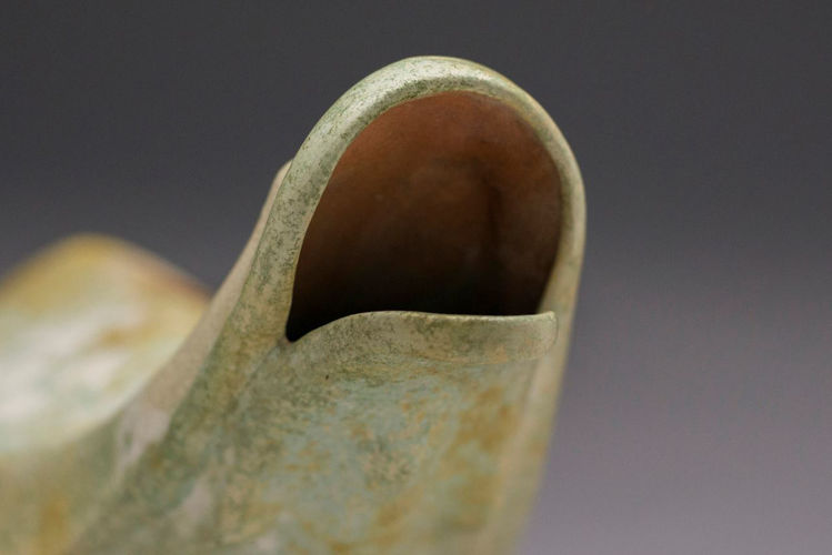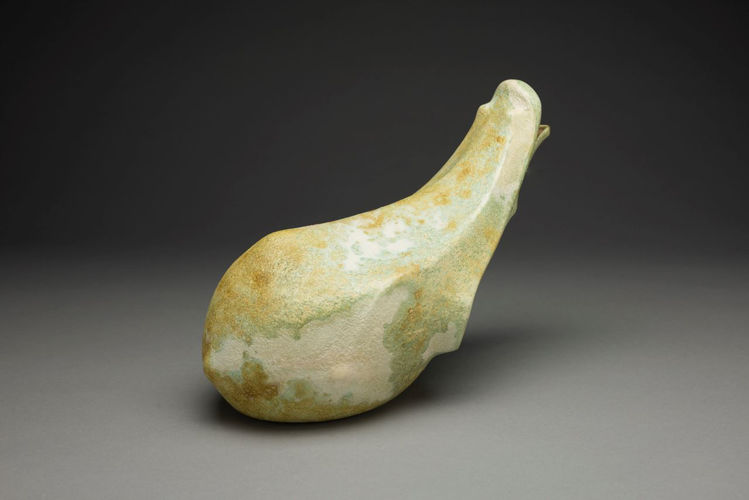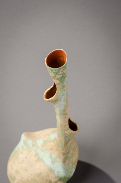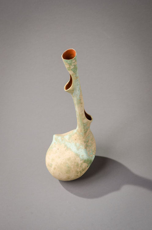 Ohio sculptor Falcione came to his practice through conceptualism, and though his works have settled into functional objectivity —focused on producing art for the interior — they hold a vestige that is exchanged in the language and understanding of the material. The ‘Bud Vase’ naturally assumes a plantlike form and resolve, the surface of the porcelain gently roughened from a process in which the vessel is dipped in hot beeswax, the depth of texture heightened through a selection of delicate stain applications in which the colour appears to have alchemically fused with the clay rather than simply sitting on top.