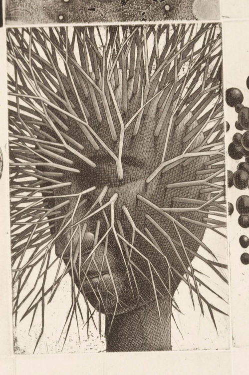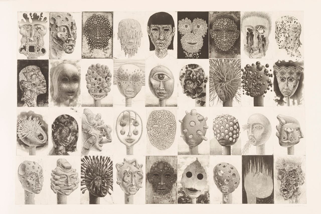 Liberating portraiture from strict representation, Sakura uses his prints to reflect on internal conflicts and fantasies, harmonising those perceptions with the image to create a portrayal that acknowledges its own subjectivity — and searches for a universal emotive language. The surrealist abstraction of “Tomas” reduces down to a repetition of mouths and lips (particularly pouting and suggestively female) and extols a wonderment that might topple into obsessiveness over this one trait — or clarifies a personality to its single, definitive point.