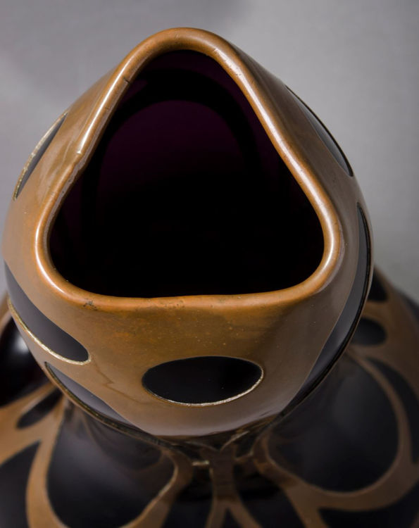 I'm interested in this piece! https://www.hieronymusobjects.com/glass-vase-with-copper-overlay-unknown-2