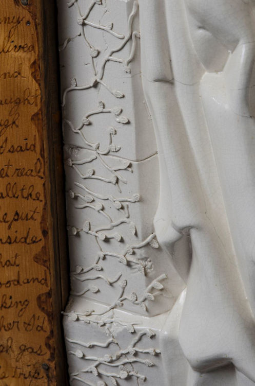 Earl’s hand-built ceramics concentrate on descriptive scenario, utilising landscape or building as an environment for laying out a storyline. Often focused on a recurring character named “Bill” and a likeness of rural Americana, Earl juxtaposes scenes with the romance and highly wrought fantasy of rococo porcelain, balancing folkiness with a sensual grandeur in a manner that often seems faintly surreal. The three-dimensional complexity of this work is typical