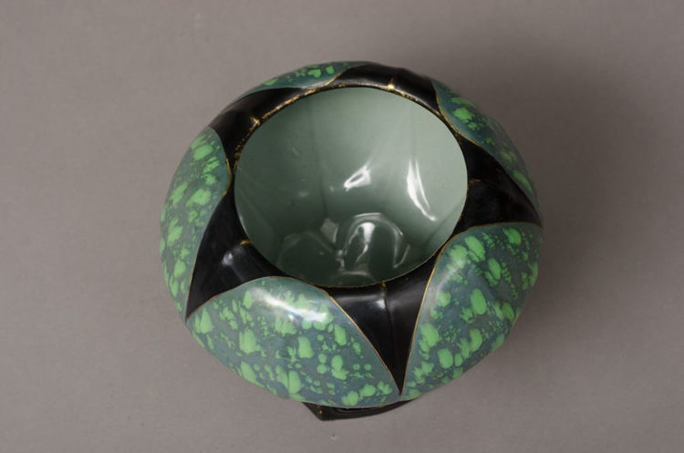 I'm interested in this piece! https://www.hieronymusobjects.com/large-black-and-green-compote-eduard-stellmacher-2