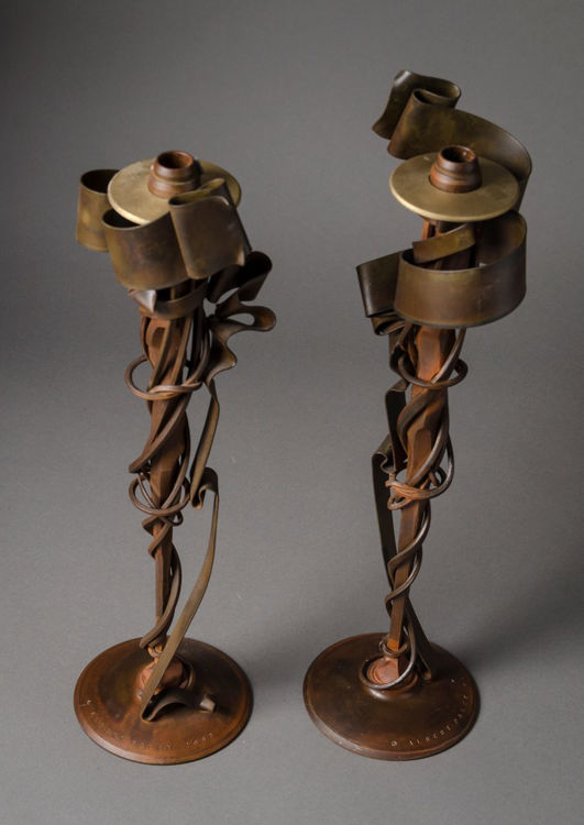 I'm interested in this piece! https://www.hieronymusobjects.com/millenium-candlesticks-albert-paley-2