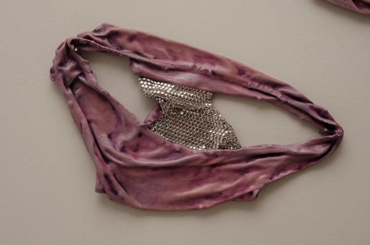 “Sunday” explores presence even in the absence of the human, and the projection of loaded context and themes thrown upon something so inert and everyday as panties in collection — striking tones of auto-eroticism and fetishistic admiration, or obsessive and voyeuristic compilation. Gamble’s small addition of glitter and jewels on the inside of the crotch lining offers up the duality of revealing such intimate proximity, whilst celebrating and revelling in female sexuality. 49 panties - various sizes -