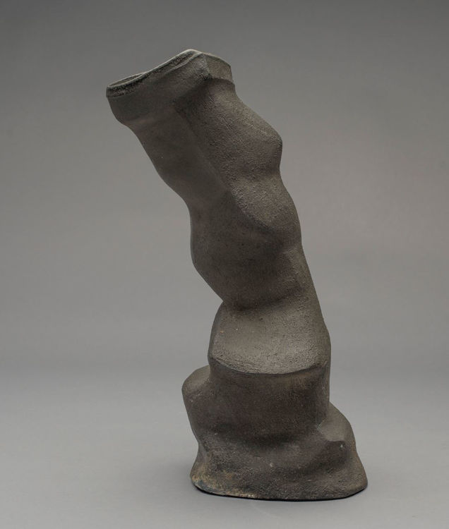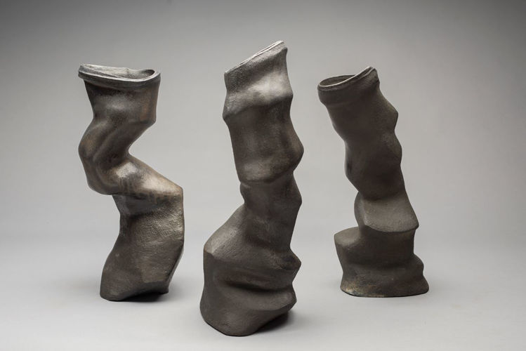 The fluidity and figurative resonance of Bhat’s ceramic sculpture might result from the artist’s original background in Indian classical dance — the negotiation of space as ancillary to an overall positive form, and performative act of creation appealing to Bhat. “The Realm of the Hungry Ghosts” suggests an elemental fusion of subject and object, landscape and figure sliding together to become single, more definitively abstract entities — the geological curvatures embedded in the vessels feeling clearly resolved from the material nature of the clay, but conscious tooof a human presence upon its overall resolution.