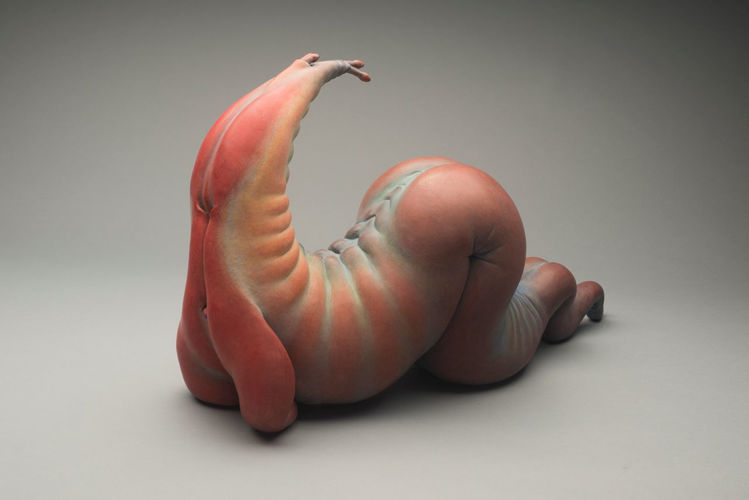 Judy Fox’s highly sexualised sea creatures explore the conception of gender and the rise of body issues from a psychological and sometimes uncomfortable angle, framing and questioning human imperatives as they jostle in context with the Cephalopodic form. A sense of hyper-reality, or real versus a new disarming fantasy, finds itself in Fox’s striking use of gradated colour — the artist building plush hues that seem almost chromatic with a casein paint, layered and masked.